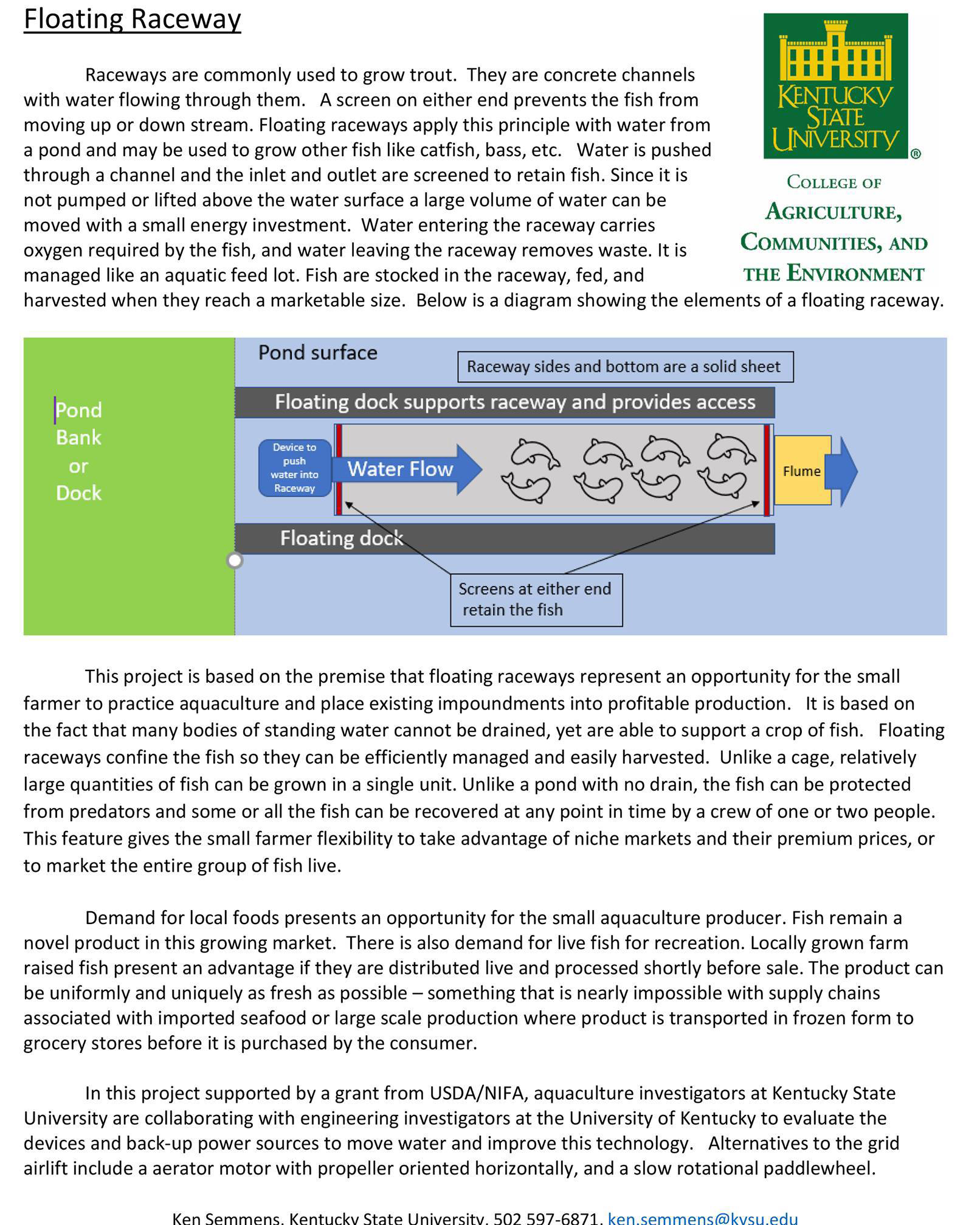 Andrew Stephan’s will compare open pond culture and a floating raceway system for nursery production of phase I largemouth bass in ponds with managed blooms. A secondary task Andrew will compare these results with floating raceways in a naturally fertile (fed) pond with an unmanaged bloom.